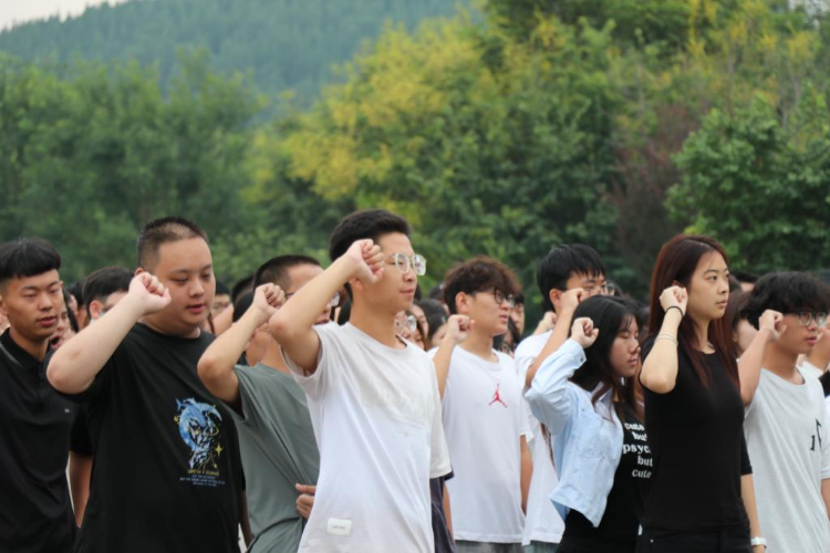 “我宣誓:铭记抗战历史,继承先烈遗志;弘扬民族精神,捍卫和平正义;勤奋学习,努力工作;立志成才,报效祖国!”在领誓人的带领下,全体师生高举右拳,面对国旗发出铿锵誓言。掷地有声的誓言在空中回荡,展现了新时代师生矢志不渝的爱国情怀和昂扬向上的精神风貌。