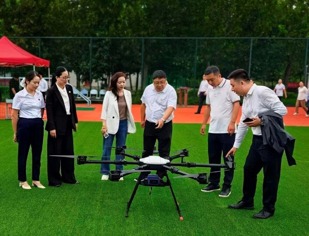 会后,全体领导移步训练场,体验无人机试飞。在专业飞手的指导下,实际操作了无人机的起飞与降落,切身感受了其操作的便捷性与稳定性。在场人员对无人机的精准操控和广阔应用前景给予了高度评价。